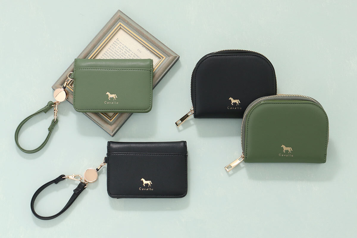 パスケースと二つ折り財布には、ゴールドで描かれた馬のシルエットがあしらわれ、上品な印象を添えています。