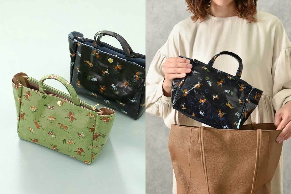 さまざまなカラーの馬を総柄であしらったバッグインバッグ。
