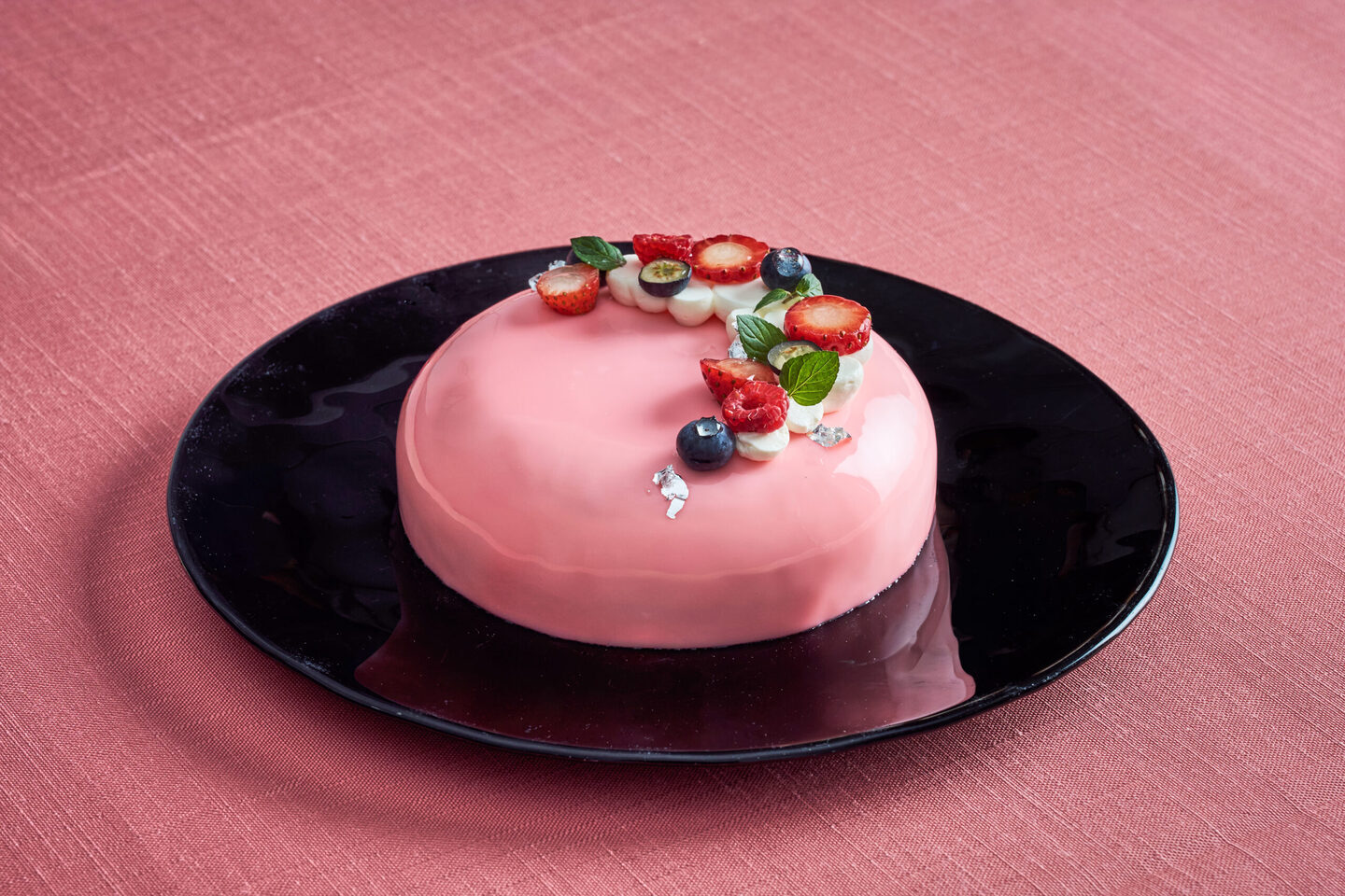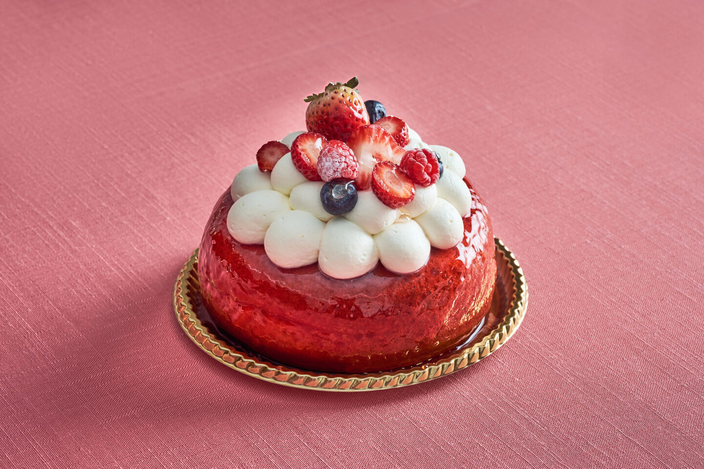 いちごとベリーの層に、ライチムースを重ねた、爽やかな甘酸っぱさが広がるケーキ。