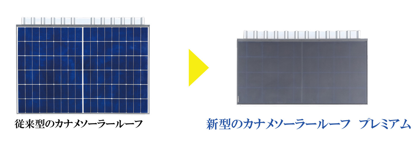 防眩タイプの屋根一体型太陽電池「カナメソーラールーフ プレミアム」