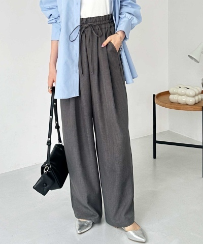 ワイドシルエットながらフォーマルな印象も漂うパンツ。着回し力抜群のグレーは春色シャツとも好相性。小物で洗練されたオフスタイルに。