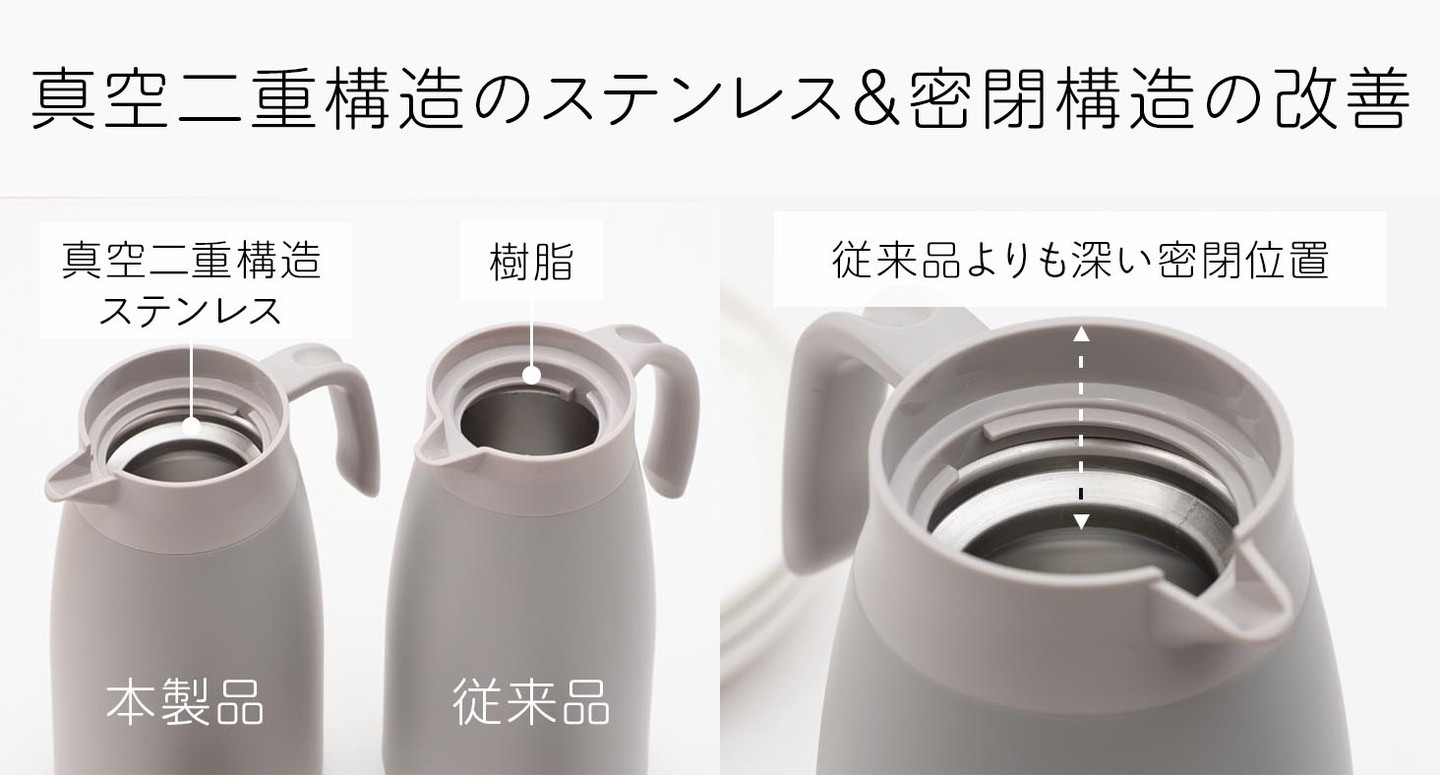 ■真空二重構造のステンレス素材&密閉構造の改善