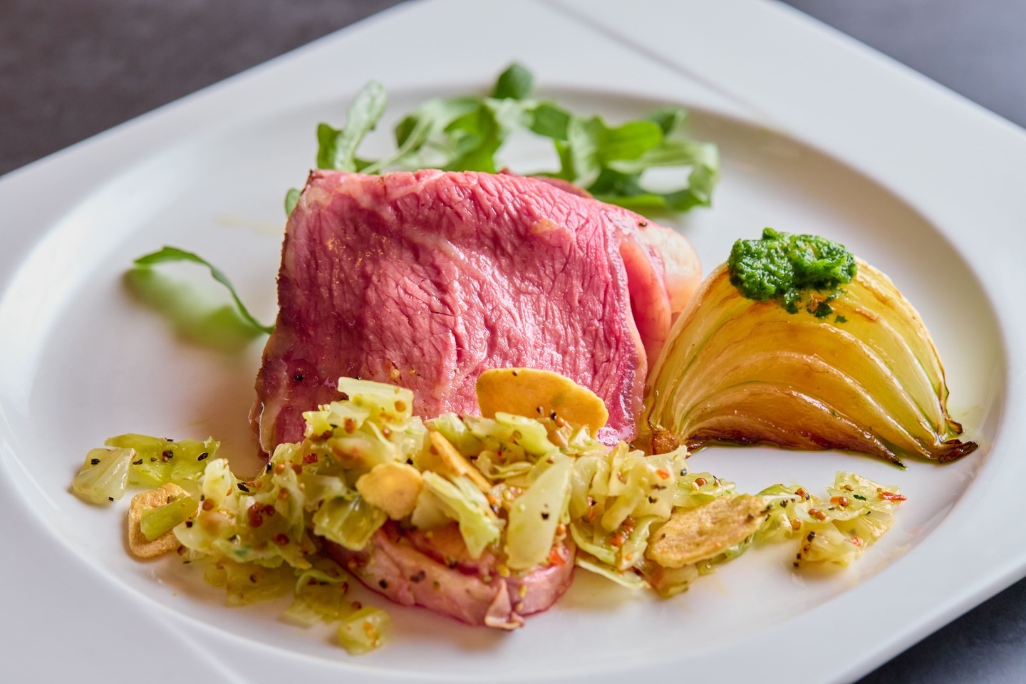 カシュカシュ伝統のローストビーフに、毎年「この季節を待っていた」と声が上がる「春のキャベツソース」が今年も登場。やわらかなローストビーフに、みずみずしいキャベツの甘みとアンチョビのコクやマスタードのアクセント、イタリア産唐辛子のほのかな刺激が重なり、ひと口ごとに春の余韻が広がります。「今しか味わえない」その特別感と、変わらぬおいしさで、口コミでも高い評判を受け続けるこの時期の定番。思わず誰かに話したくなる、そんな一皿です。