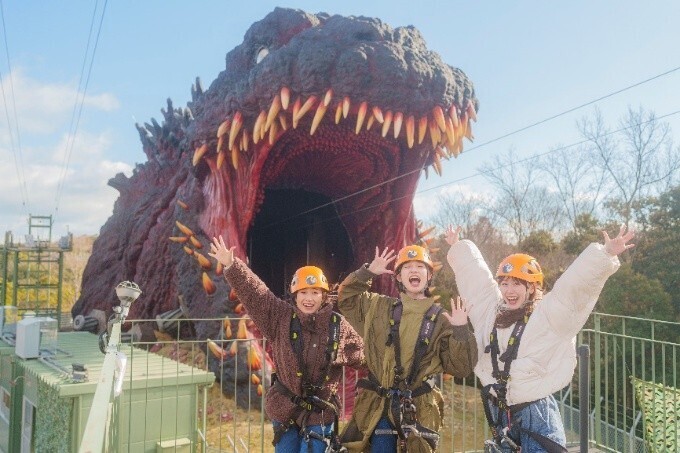 大迫力のゴジラに向かって“ふたりで”絆ジップライン!「春のペアジップライン 〜ゴジラを監視!記録写真をUPせよ!〜」3月28日〜6月28日 期間限定で開催