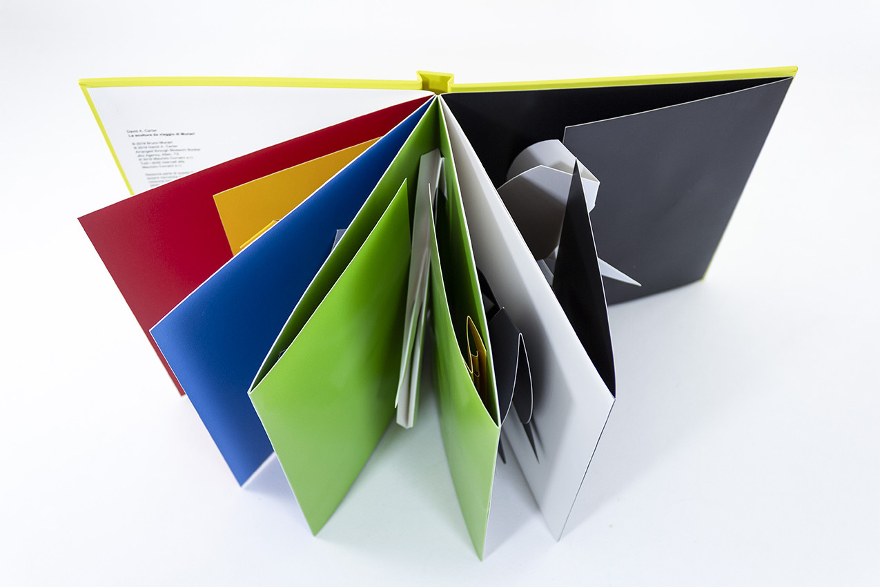 『ムナーリの旅する彫刻』は、芸術作品をカバンに収めて持ち運んだり、自宅のデスクや棚、旅先のホテルなどに飾ったりできる書籍です。同時に、本は言葉だけでなくその紙や大きさ、色彩を通してもメッセージを伝えてくれると、雄弁に語る1冊でもあります。ブルーノ・ムナーリの創造性とともに、本というコミュニケーション手段における革新的なアプローチへの敬意が表されています。