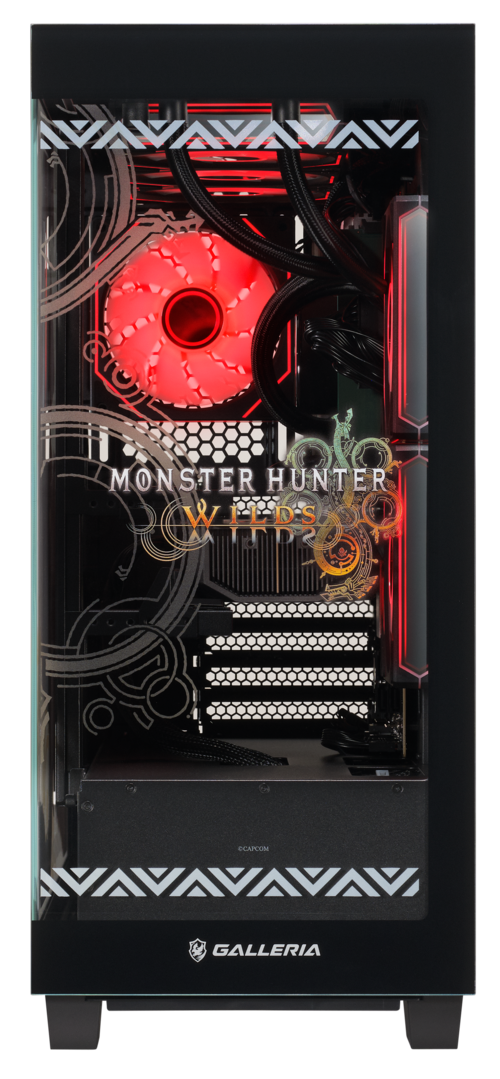 今回販売を開始する本モデルは、昨年2月に発売した同動作確認済PC同様、CAPCOM社監修のもと制作。同タイトルの動作環境基準を満たし、「モンスターハンターワイルズ 動作確認済PC」の認定を受けています。快適にプレイできるスペックはそのままに、ファン垂涎のデザインケースでプレイを楽しめます。なお、これまでのGALLERIAオリジナルケースバージョンも引き続き購入可能です。