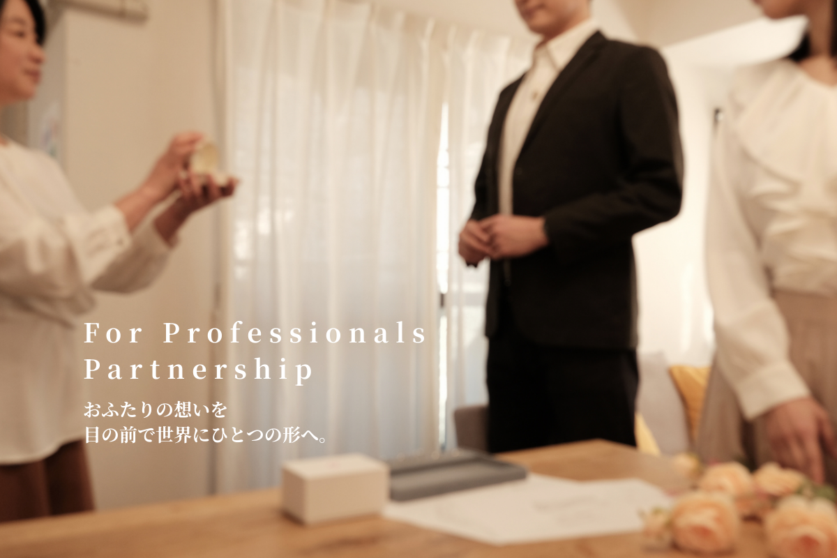 現在、全国の結婚式場様、フォトウェディング会社様、結婚相談所様を対象に、本プログラムの導入パートナーを募集しております。オンライン完結型のため、地方都市や離島などの拠点格差を問わず、都心のアトリエと変わらない品質のジュエリー提案を貴社のサービスに加えることが可能です。