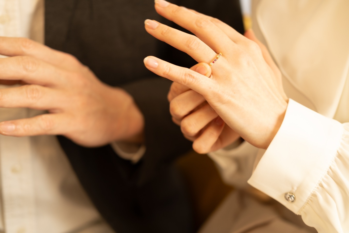 在庫・展示リスク「ゼロ」で導入可能: 指輪の在庫やサンプルを置くスペースは不要です。必要なのは「オンライン環境」のみ。貴社のサロンが、その瞬間にだけ現れる特別なプライベート・アトリエへと変わります。接客の際は、サンプルリングの貸出もサポートいたします。