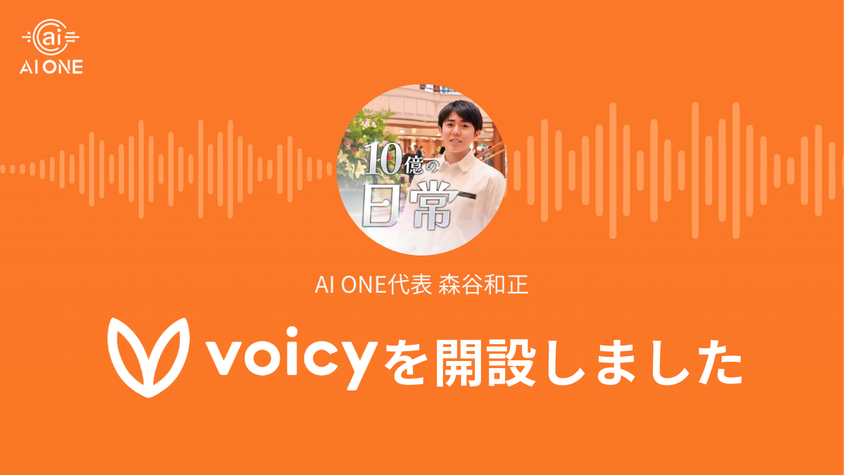 「AI時代の最前線で、あなたの可能性を解き放つ」を理念に掲げ、AIスクール「AI ONE」を運営する株式会社AI ONE(所在地:神奈川県横浜市、代表取締役:森谷和正)は、代表である森谷和正が音声プラットフォーム「Voicy」にて公式チャンネル『10億の日常』を2026年1月31日に開設したことをお知らせいたします。