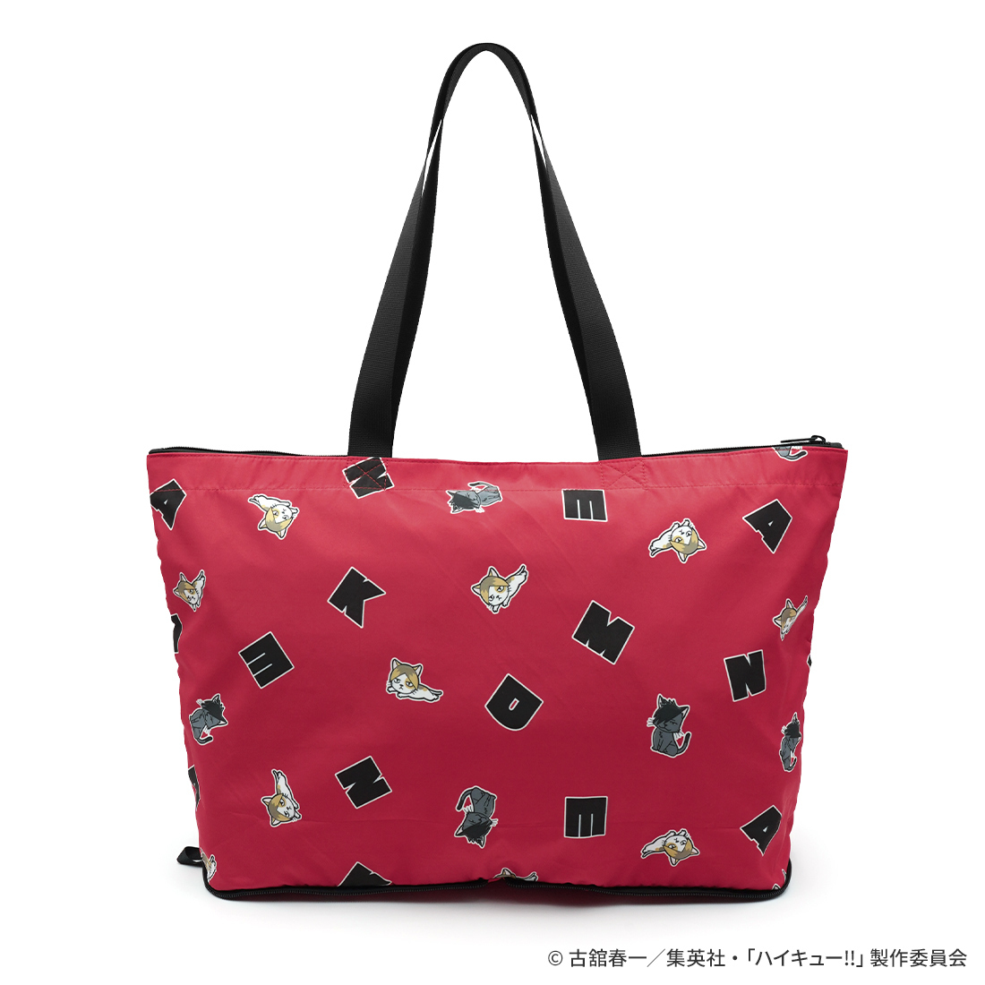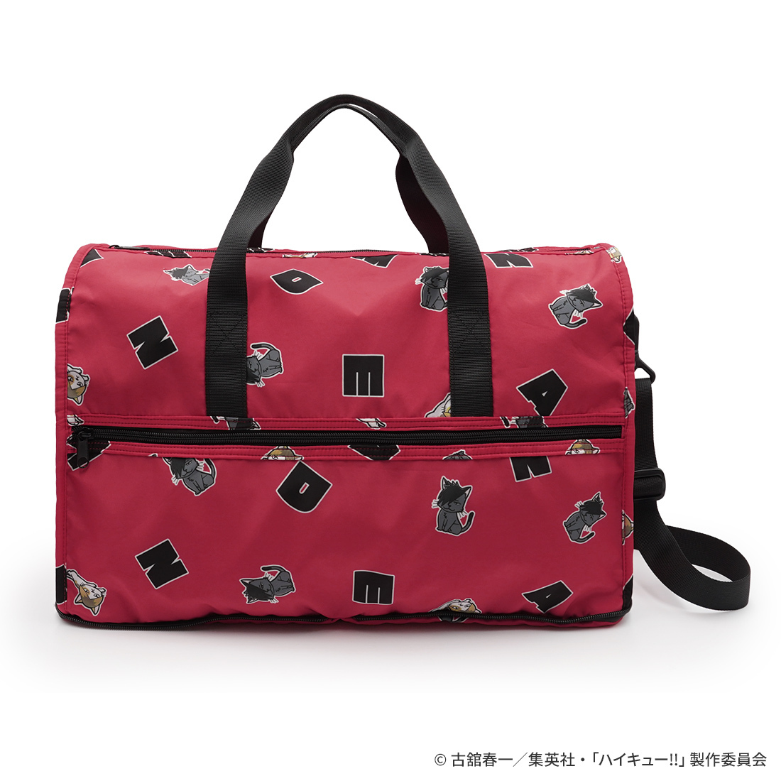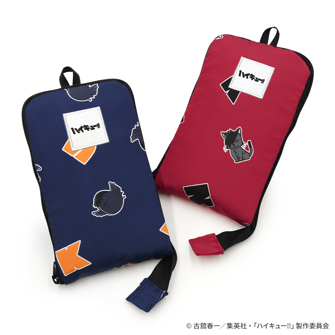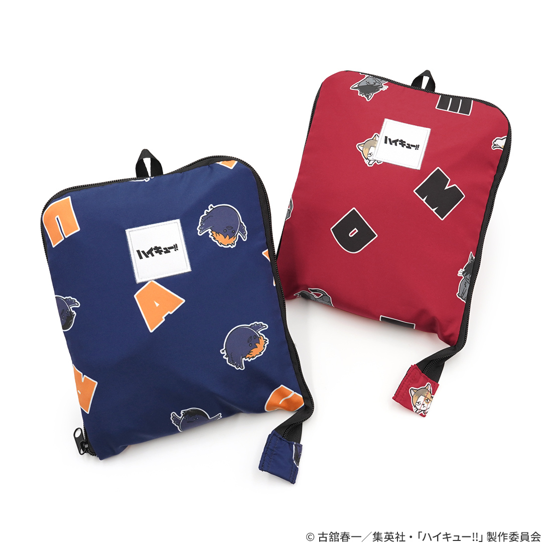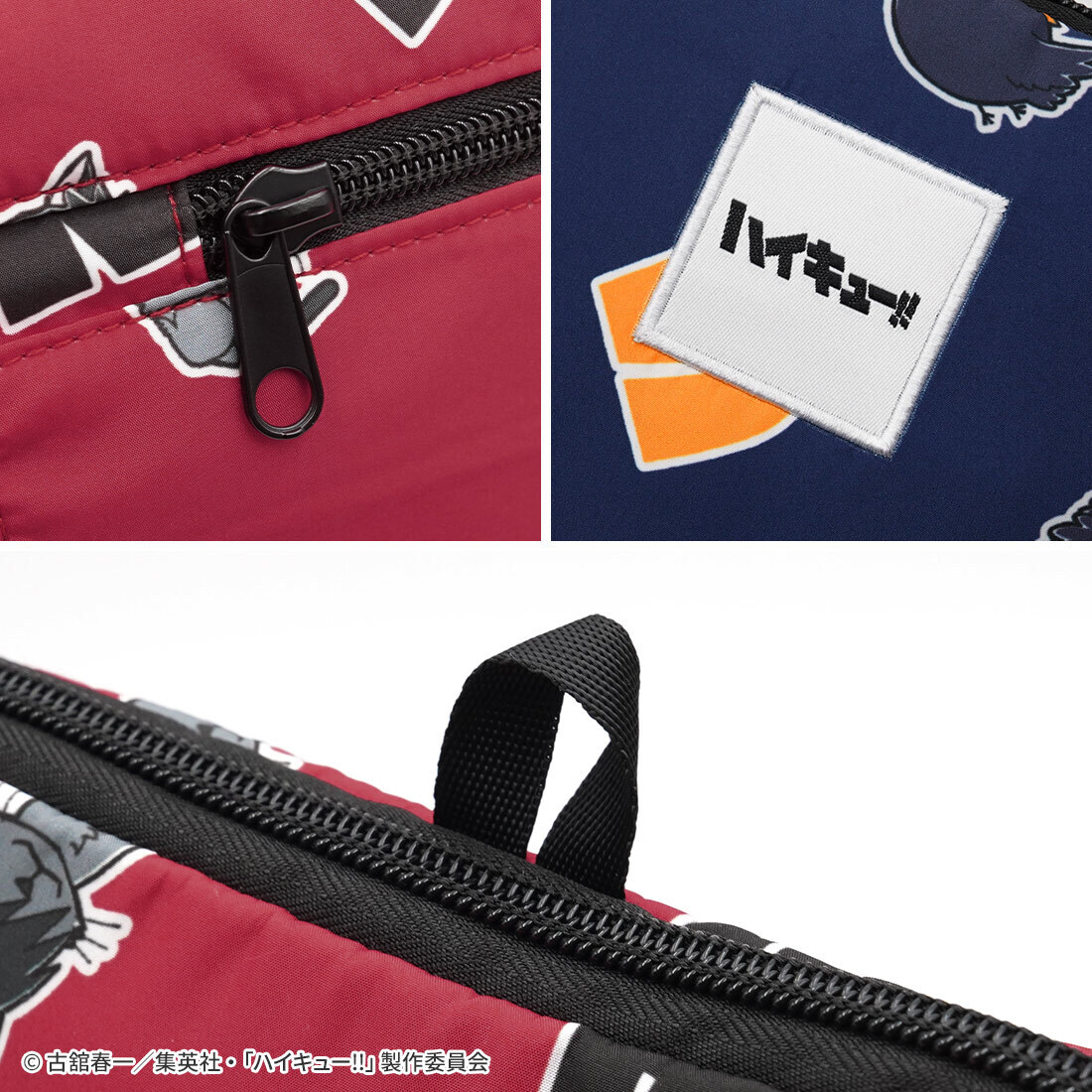 トラベルバッグの専門ブランド「HAPITAS」とのコラボアイテム。ヒナガラスやケンマネコなどマスコットキャラクターがマルチパターンになった、烏野高校と音駒高校の2つのデザイン。