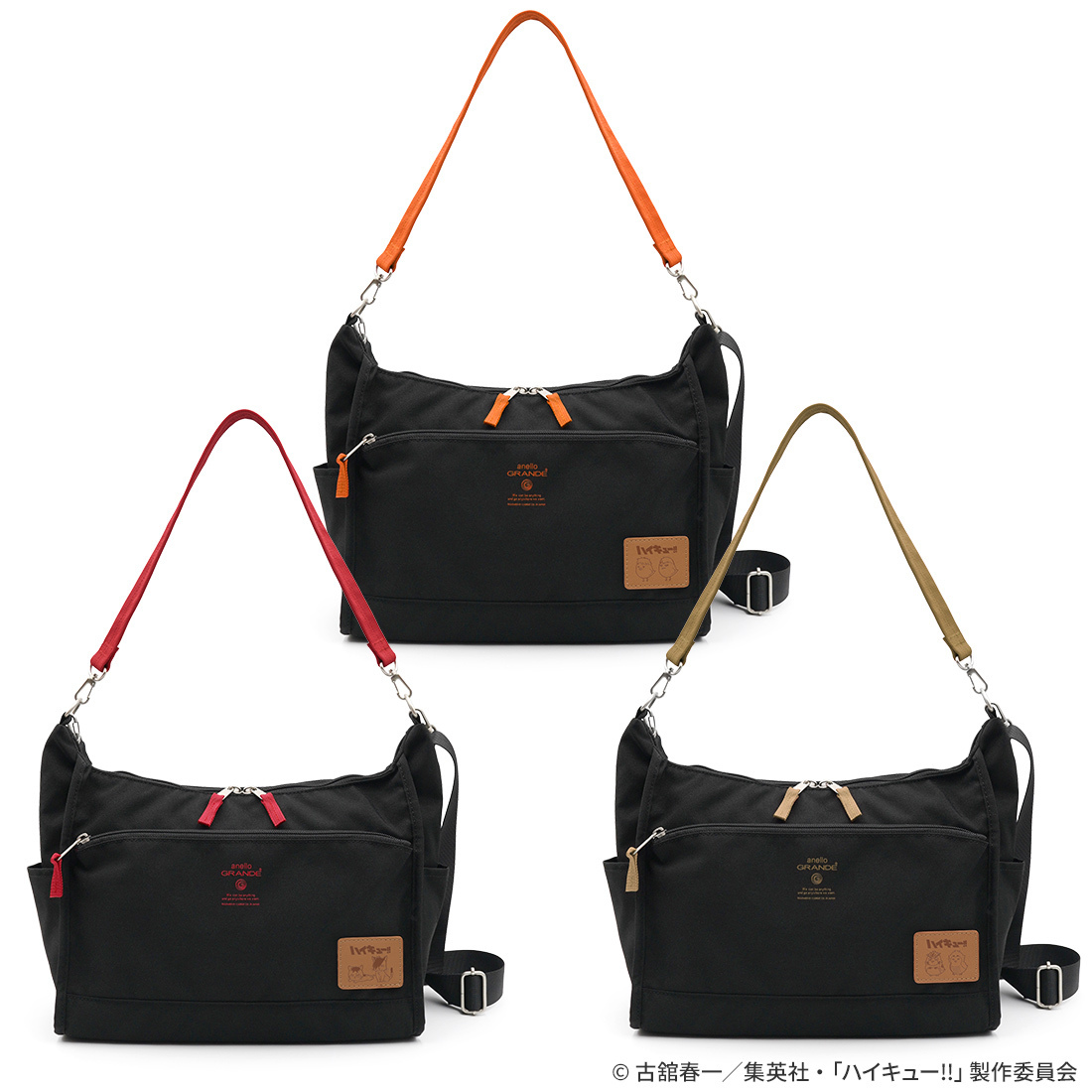 人気のカジュアルバッグブランド「anelloGRANDE」とコラボした人気のショルダーバッグ。烏野高校・音駒高校・梟谷学園高校の各3種。