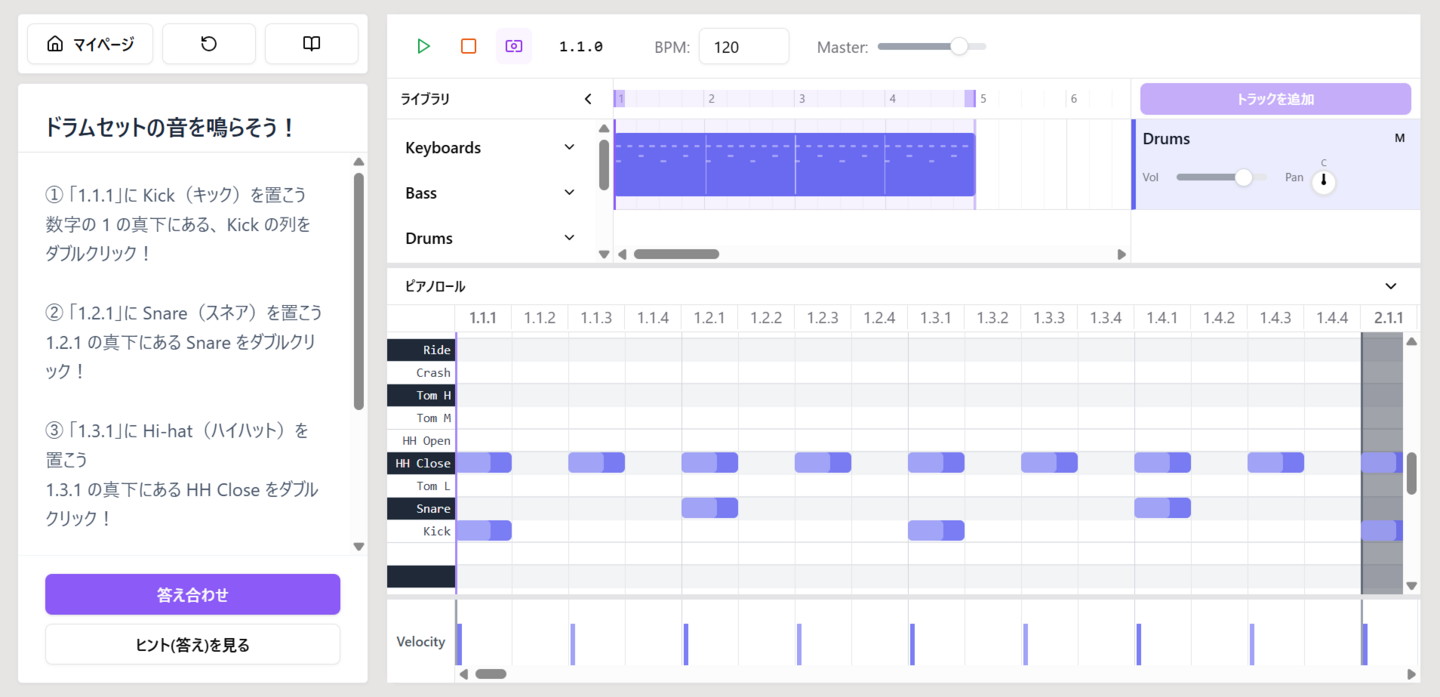 そのような中、音楽制作の新しい入り口を提供したいという思いから誕生したのが、体験型DTMレッスン「dawbe」です。初心者にとってDTMを始める際に大きな壁となるソフトのインストールが、なんと不要。ブラウザ上で動作するので、誰でもすぐに利用できます。また、実際に音を配置して学びを体感できる実践的なハンズオン形式の学習設計を採用。さらにDAWの種類を問わず共通する「基本機能」だけを抽出するなど、挫折に繋がる壁をことごとく排除しました。
