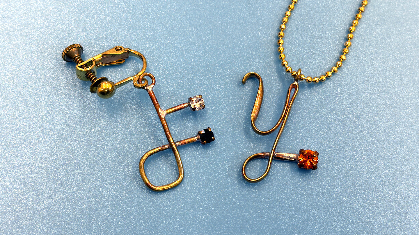 10cmの真鍮線を曲げる、切る、そして繋ぐ。既存のフォントにはない、あなただけの筆致やフォルムをアクセサリーとして立体化できます。丸線だけでなく、かまぼこ型の「貝成線(かいなりせん)」を選べるため、書体による質感の違いも楽しめます。10cmの真鍮線で2〜3文字程度を作ることができます。