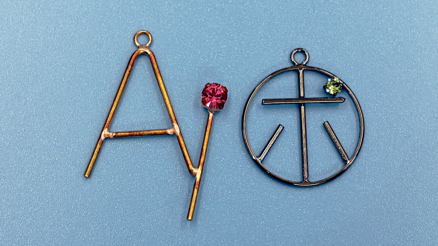 金属同士をガスバーナーで溶接する「ろう付け」の工程を、講師のサポートのもと体験いただけます。離れたパーツ(「i」や「j」の点や、「な」や「ホ」などの構造)をどう繋ぐかというパズル的な面白さもあり、デザインの工夫次第で無限のバリエーションが生まれます。