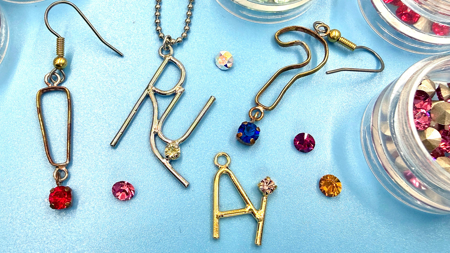3つのサイズ、24色以上のクリスタルから好きな色を選び、チャームやネックレス、ピアスなどに仕上げることが可能です。自分のイニシャルはもちろん、大切な人の名前や背番号など、パーソナルな想いを込めたアイテムが作れます。