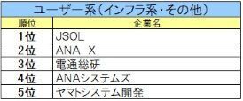 ◆ユーザー系(インフラ系・その他)ランキング◆