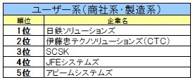 ◆ユーザー系(商社系・製造系)ランキング◆
