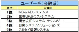 ◆ユーザー系(金融系)ランキング◆