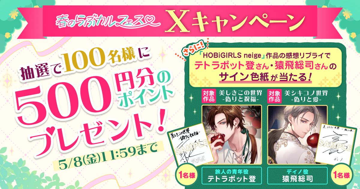 企画?:500円分のポイントや声優直筆色紙が当たる!公式Xキャンペーン