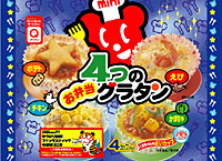 冷凍食品業界初! グラタンメニューの中で人気の高い、「えび」「チキン」「ポテト」「かぼちゃ」の4種をアソートした商品です。4色の「くまちゃん占い」つき抗菌加工紙カップを使用しています。