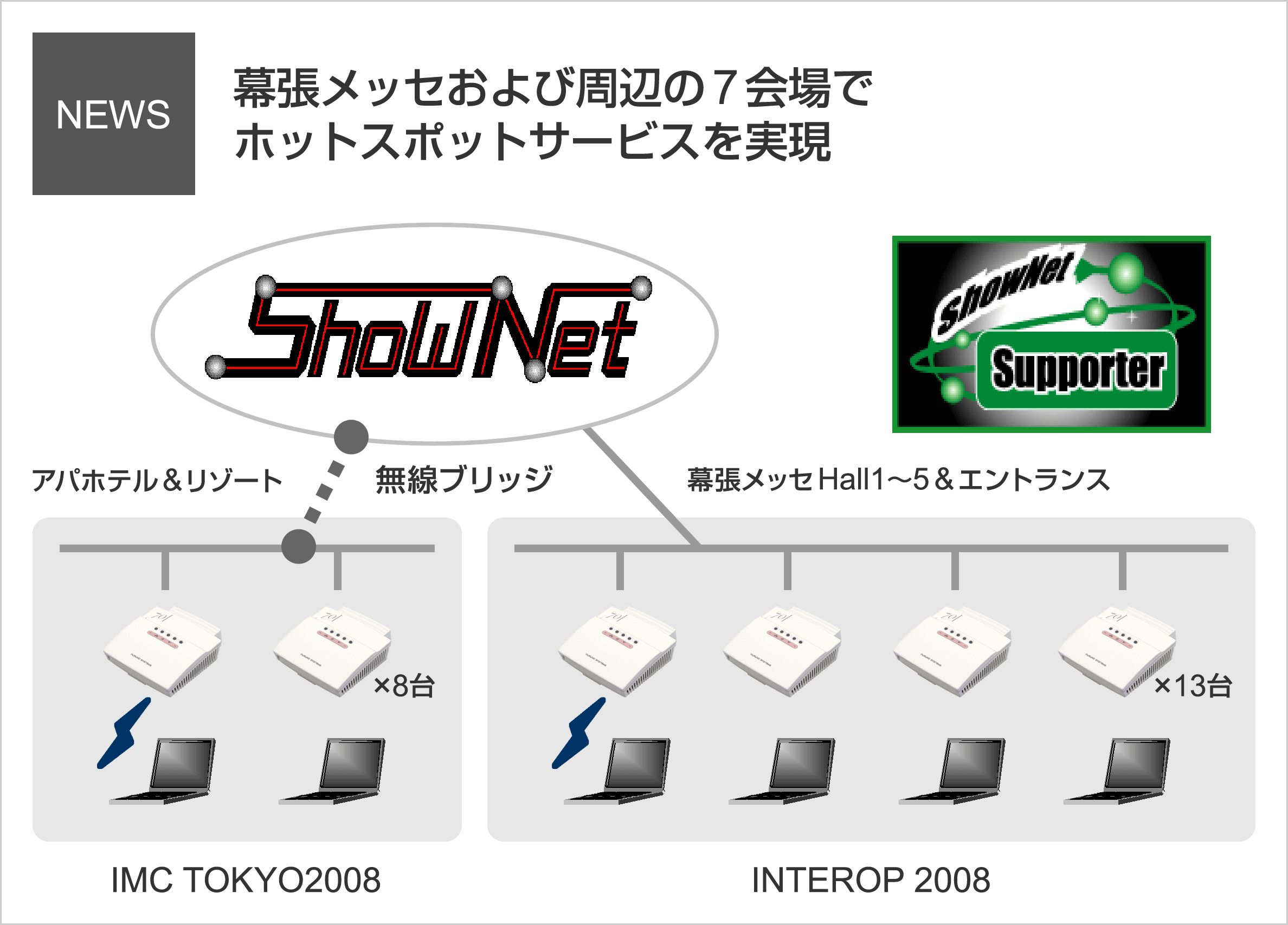幕張メッセで開催されるINTEROP TOKYO 2008の開催期間中、期間限定で無線ネットワーク管理システムUNIFASによるホットスポットサービスを実現します。