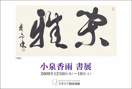東京・銀座の『クオリア銀座画廊』にて青森県在住の書道家『小泉香雨』が個展を開催。会期は2009年12月8日(火)-19日(土)。