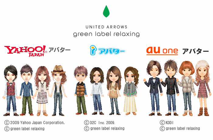 2009年12月9日よりUNITED ARROWS green label relaxingが企画するオリジナルアバターアイテムがYahoo!アバター、iアバター、au one アバターにおいてリリースされ、ユーザーはgreen label relaxingのアイテムを着用することが出来る。各アバターコミュニティ内ではgreen label relaxing主催のファッションコンテストも開催され、コンテスト入賞者には限定トロフィーなど賞品アイテムが贈られるキャンペーンも実施する。