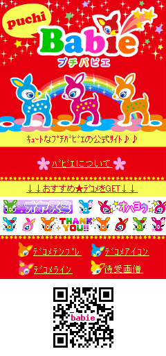 女子高生の間で爆発的なブームとなり、不動の人気を独り占めにした話題のキャラクター『プチバビエ』☆小鹿をモチーフにしたとってもキュートな『プチバビエ』の「絵文字」「テンプレート」「待受け画像」など、デコメ(R)素材全般を提供いたします。