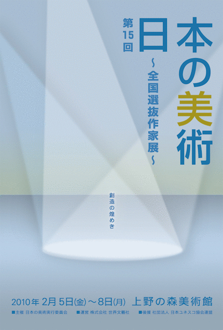 第15回 日本の美術 -全国選抜作家展-を2010年2月5日(金)-2月8日(月)の期間に上野の森美術館で開催。全国選抜作家による日本画、洋画、彫塑・陶工芸などの美術作品を展示します。入場無料。