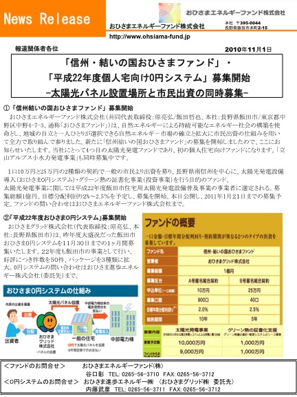 おひさまエネルギーファンド株式会社のプレスリリース