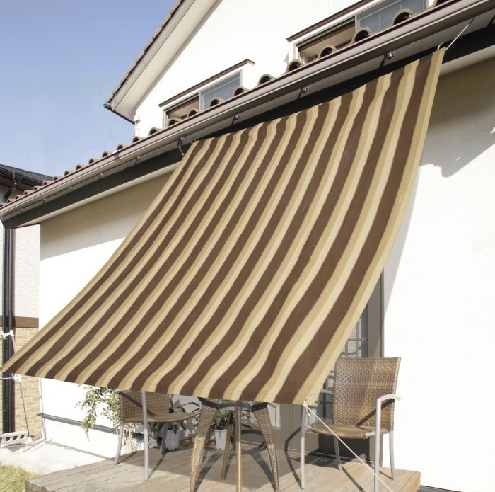 シェード、オーニング、たてす、パラソル、そして和式のよしず、すだれなど、デザインやタイプにより呼び方は異なりますが、天然素材や布地などで、窓やドアの外に設置し、外から入る日差しを防いで室温の上昇を抑えたり、雨をよけたり、外からの目隠しができる日よけアイテムのこと。カラフルな布地はエクステリアとしても人気ですが、遮光率や耐久性など機能性に優れた商品も多数あります。