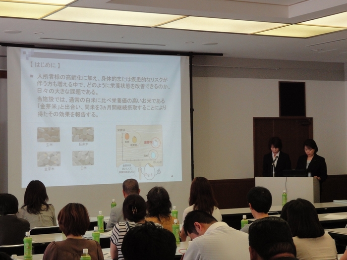 『栄養士のためのスキルアップセミナー(※)』で、『金芽米』を採用した介護老人施設の事例発表があり、3ヶ月間、金芽米を主食として継続摂取した結果、利用者の健康状態に顕著な改善効果がみられたことが発表されました。