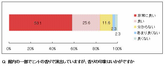 演出しているミント系オイルの香りの印象についても、「非常に良い」と思った方が58.0%、「良い」と思った方が26.0%、合計で84%の人が良い印象を持ったと回答されています。