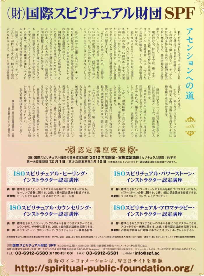 (財)国際スピリチュアル財団(SPF)認定・公認のISOスピリチュアル・インストラクター認定講座が通信講座にも対応しました。