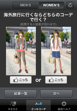 ・毎日配信されるテーマに合ったコーディネートを選んで楽しめる「どっちコーデ」機能によって、旬の着こなしや、他のユーザーの嗜好をチェックすることができます。