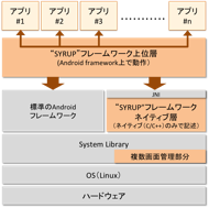『SYRUP』は、Android等の汎用フレームワークよりも上位に位置し、以下の特徴を有します。