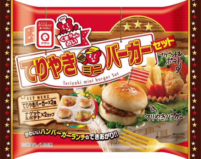 株式会社アクリフーズは2012年春季に向けて、食べ終わるとわかる占いが人気のお弁当のおかず「くまちゃん占い」シリーズより新商品 『お弁当マヨグラ』、地区限定発売新商品 『てりやきミニバーガーセット』を発売いたします。