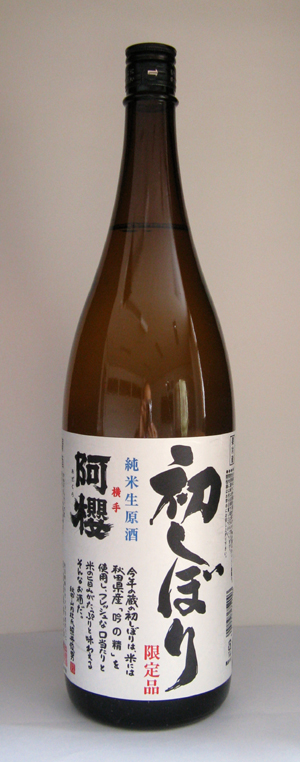 今回蔵開放で試飲いただける新商品は【阿櫻 純米生原酒 初しぼり】、平成23年度 仕込第一号の純米無濾過生原酒です。今では稀少な秋田の酒米【吟の精】100%使用の純米酒で、フレッシュな味わいが特徴です。